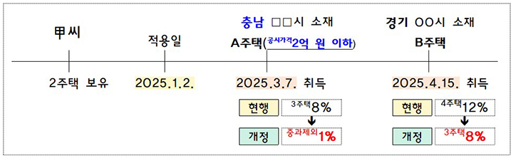 - '2025년 경제정책방향' 발표 시점인 2025년 1월 2일 이후 취득하는 경우부터 적용됨을 공표함.